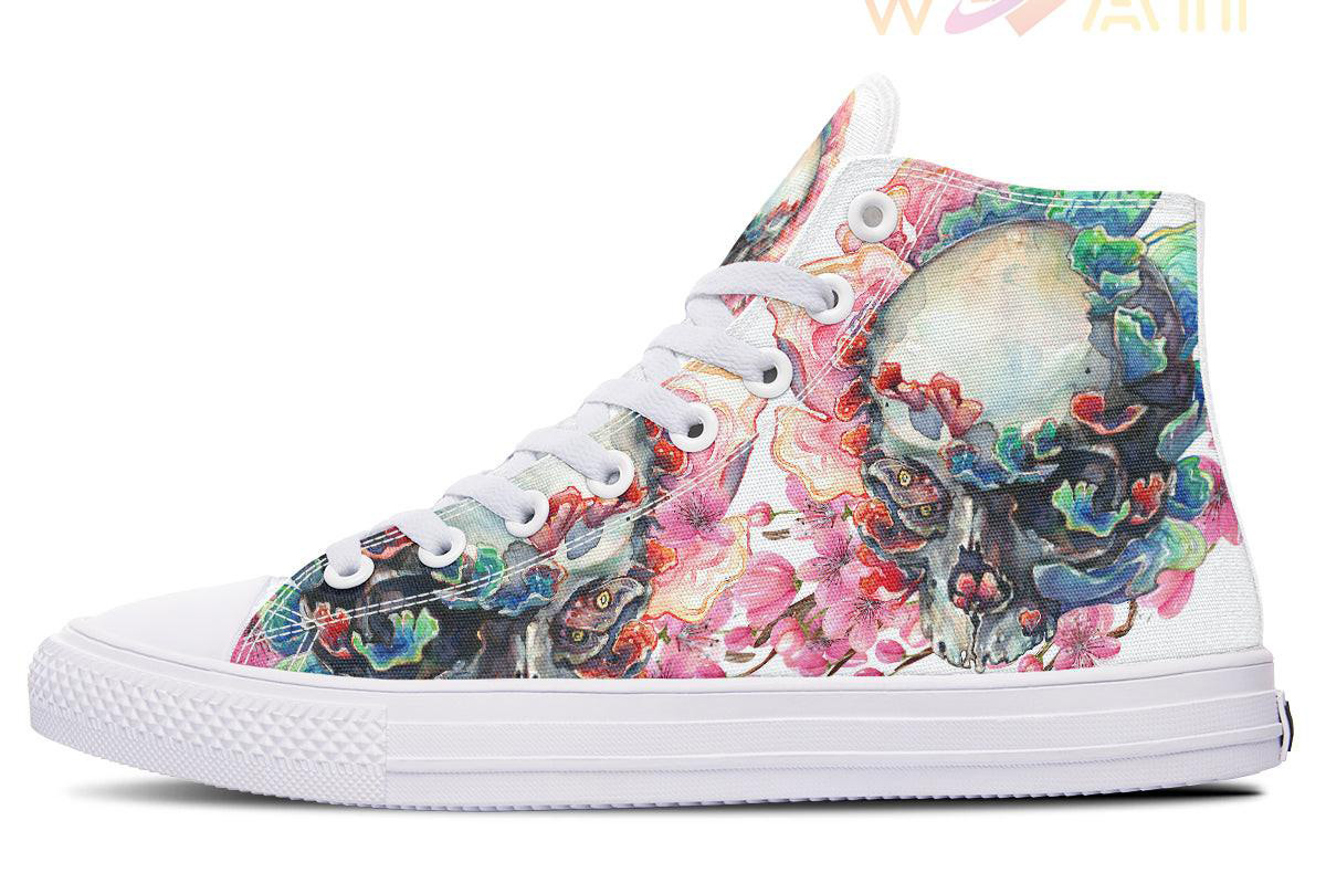 This Abstruse Skull Painting High Top Canvas Shoes was originally designed to be basketball shoes. These women’s and men’s casual shoes have become the go to walking shoes for just about any situation.