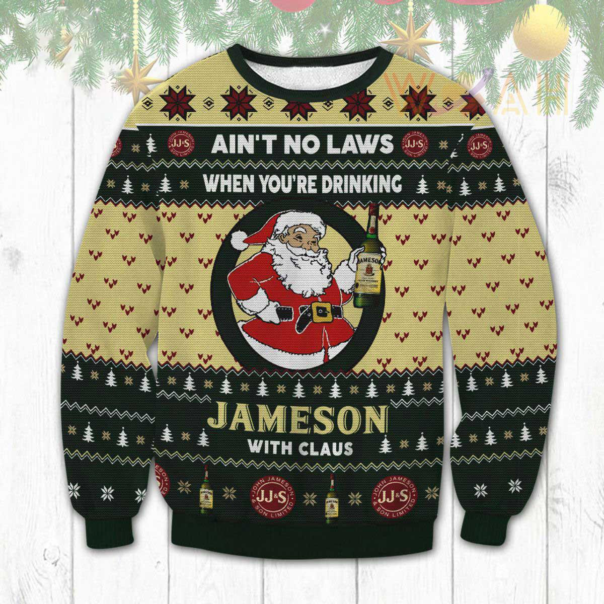 Ain’t No Laws When You Drink Jameson With Claus Ugly Christmas 3D Sweater