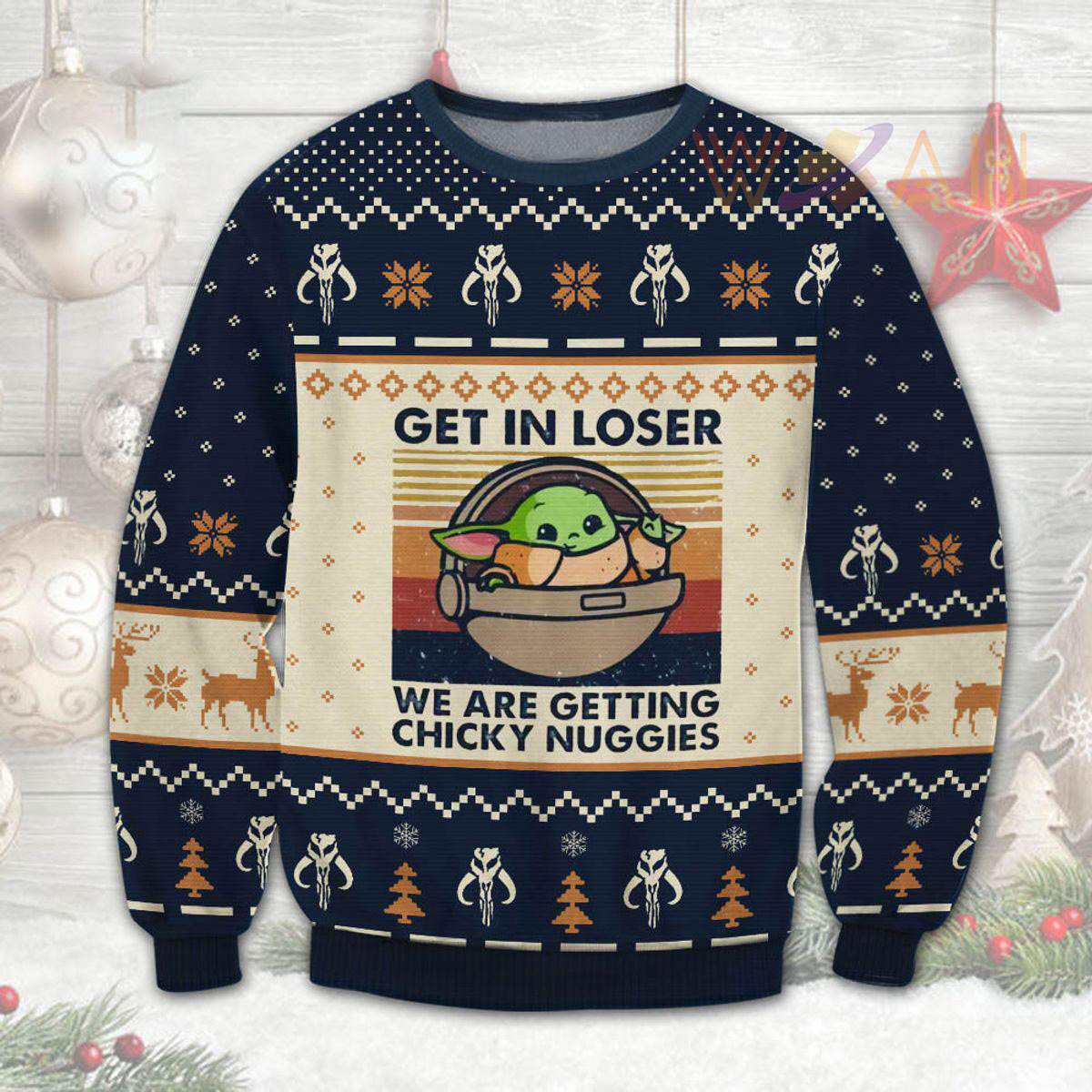 This Baby Yoda Star Wars Get in Loser Ugly Christmas sweater will be a perfect gift for your loved ones and friends.