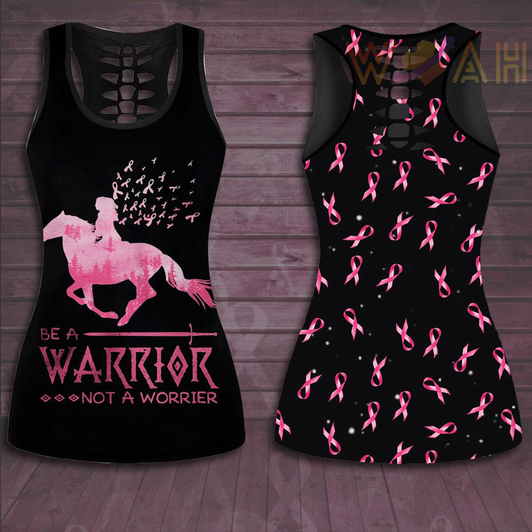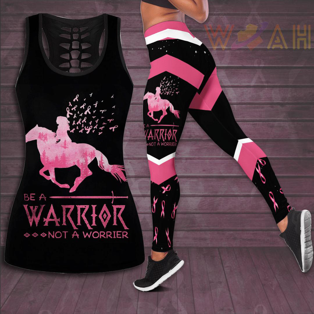 “Be A Warrior Not A Worrier” Breast Cancer Awareness 3D Hollow Tank Top & Leggings