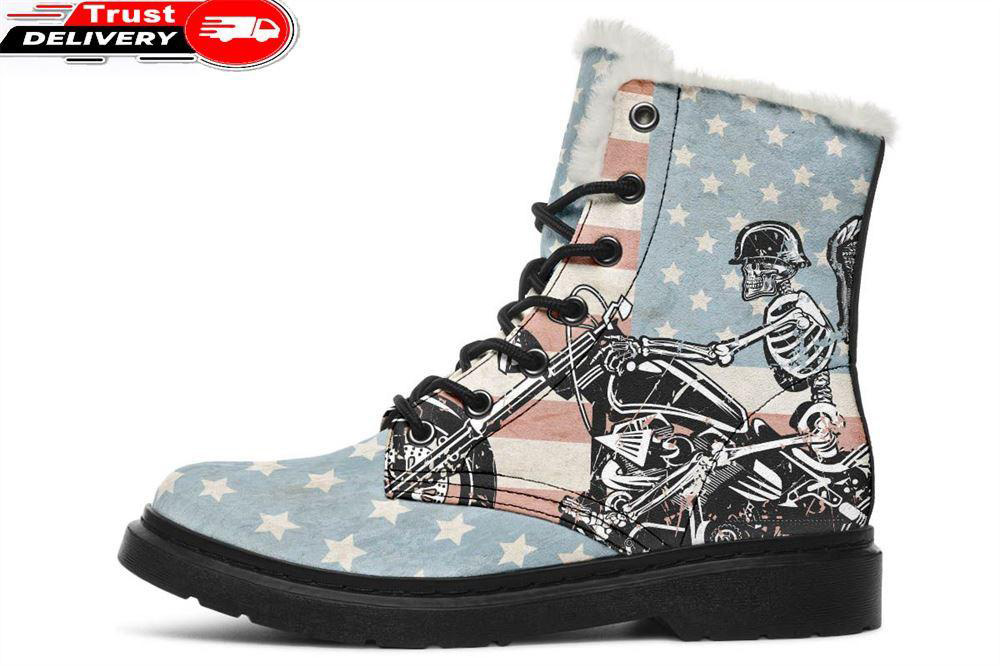 Biker Flag Rider Faux Fur Leather Boots