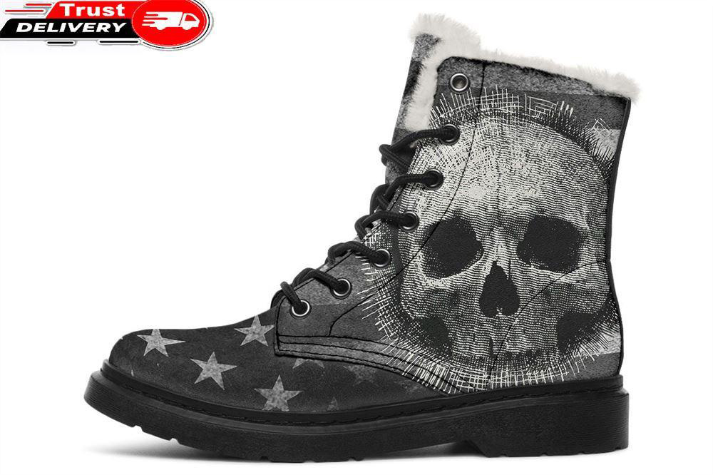 Black And White Flag Skull Faux Fur Leather Boots is a great pair of boots can really complete a look. Prep for unpredictable weather conditions or smart-casual plans with our edit of leather’s boots.