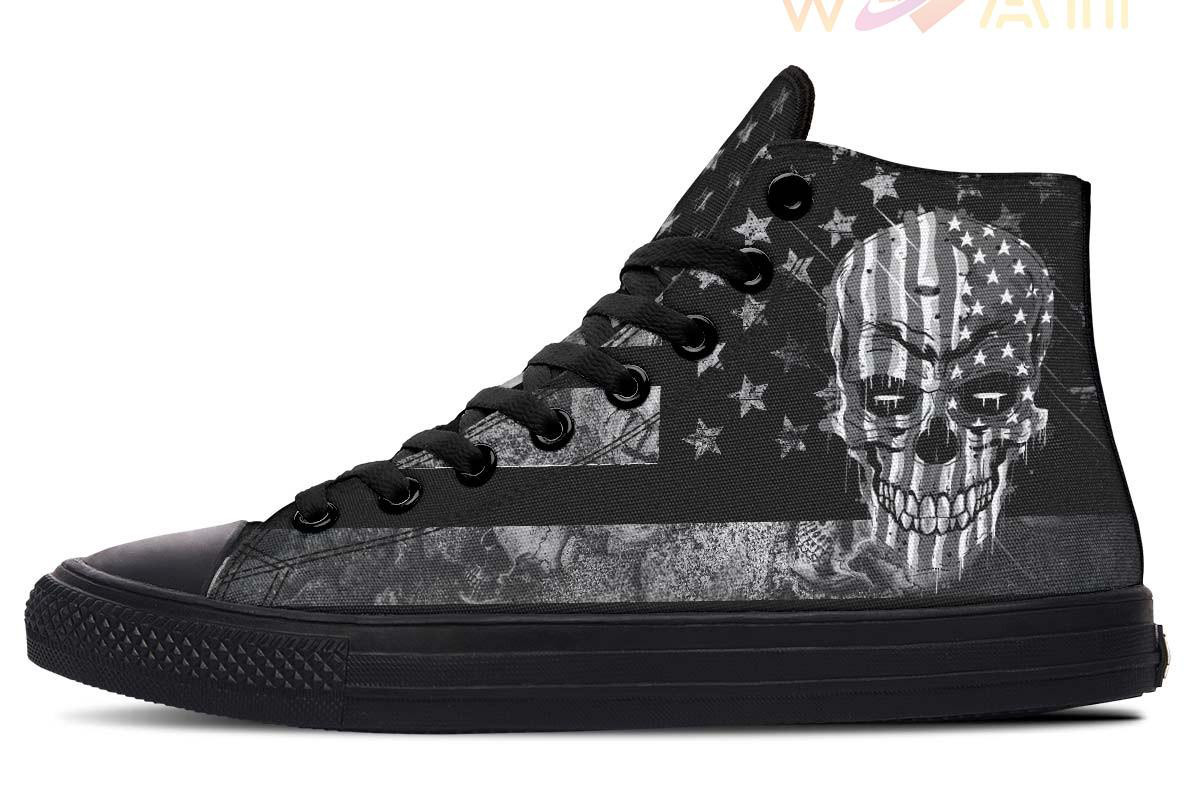 Black And White Skull Flag High Top Canvas Shoes