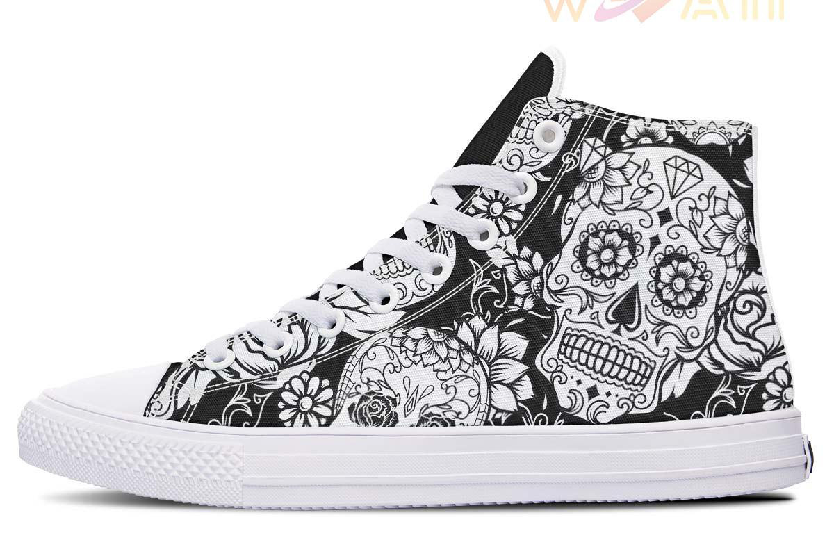 Black And White Skull High Top Canvas Shoes