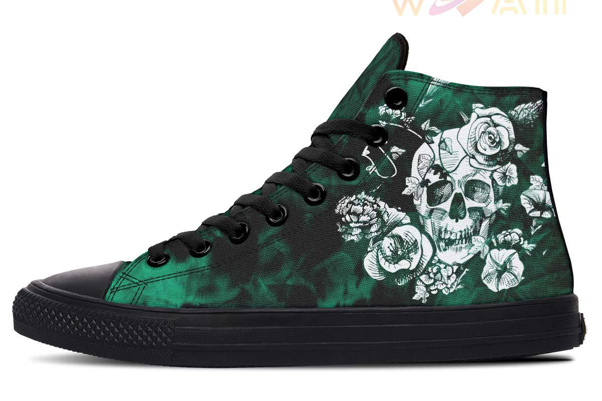 Black Tie Dye Skull And Rose High Top Canvas Shoes