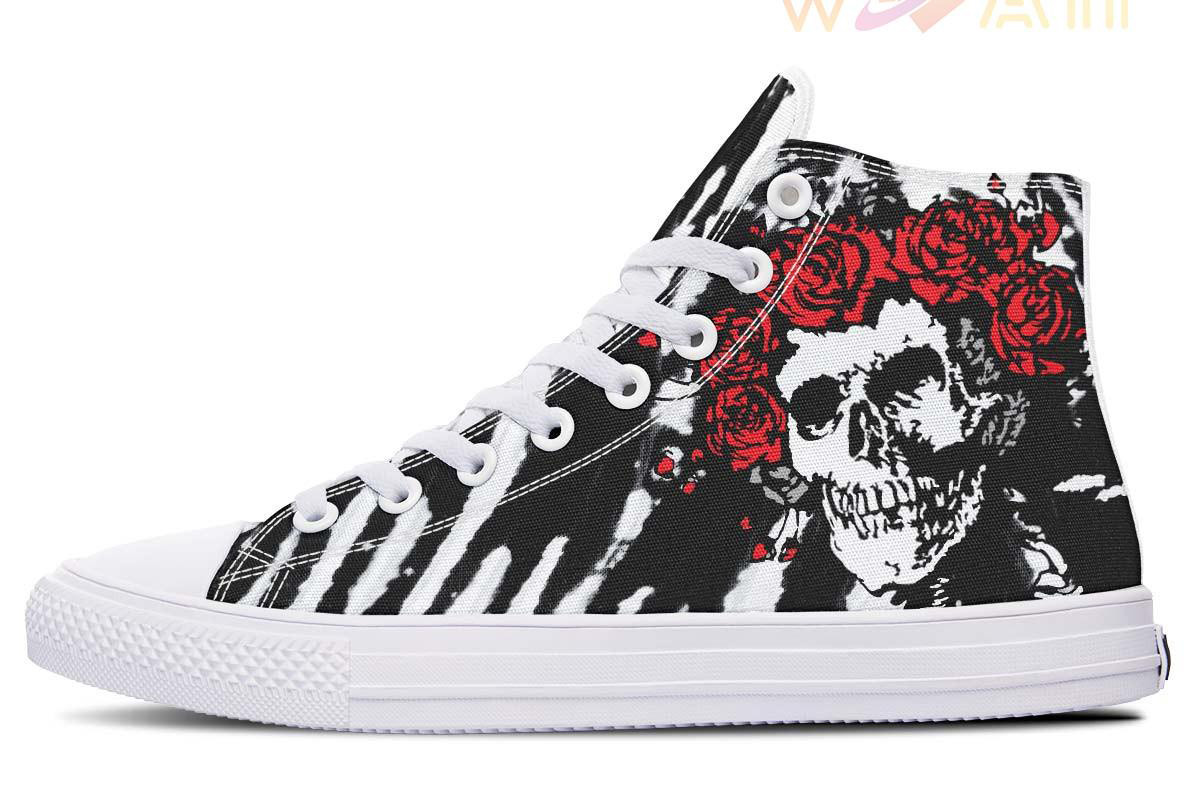Black White Abstract Skull And Rose High Top Canvas Shoes
