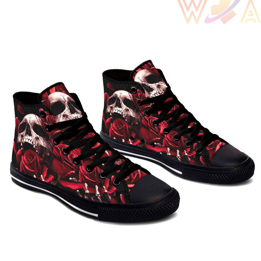 Blood Rose Skull High Top Shoes