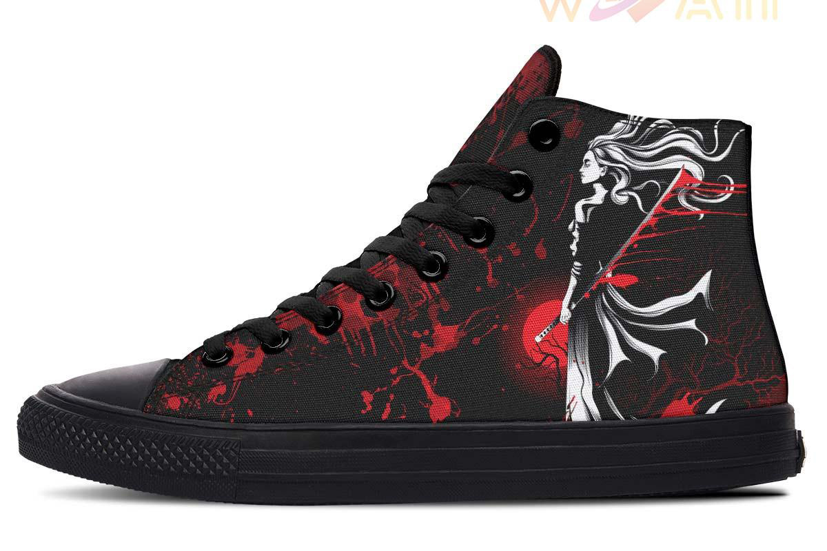 This Blood Sword Woman High Top Canvas Shoes was originally designed to be basketball shoes. These women’s and men’s casual shoes have become the go to walking shoes for just about any situation.
