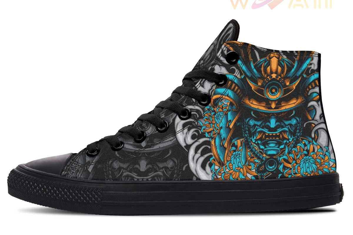 Blue And Gold Kabuto Mask High Top Canvas Shoes