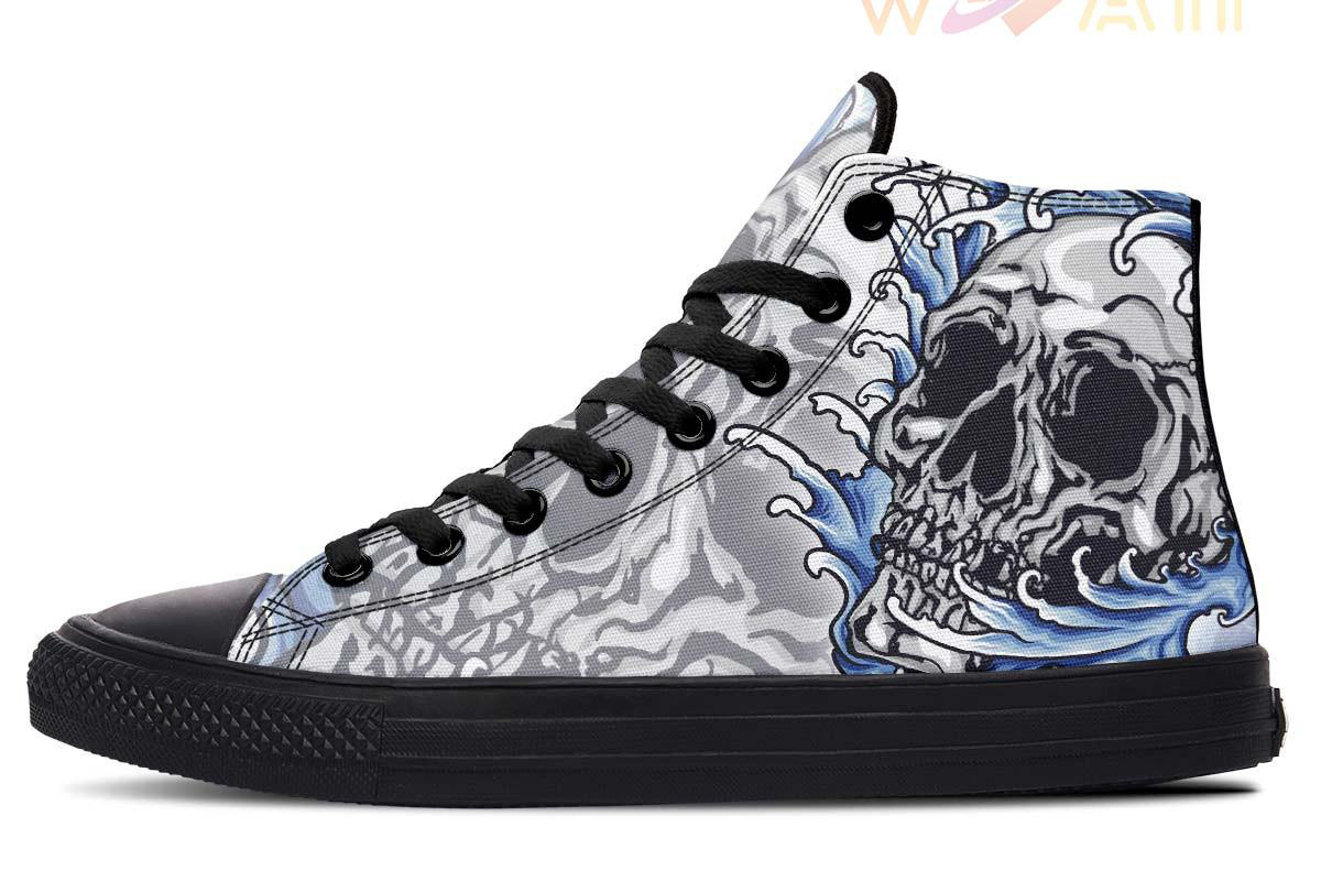 This Blue Japanese Skull High Top Canvas Shoes was originally designed to be basketball shoes. These women’s and men’s casual shoes have become the go to walking shoes for just about any situation.