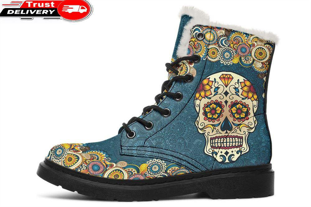 Blue Mandala Skull Faux Fur Leather Boots is a great pair of boots can really complete a look. Prep for unpredictable weather conditions or smart-casual plans with our edit of leather’s boots.