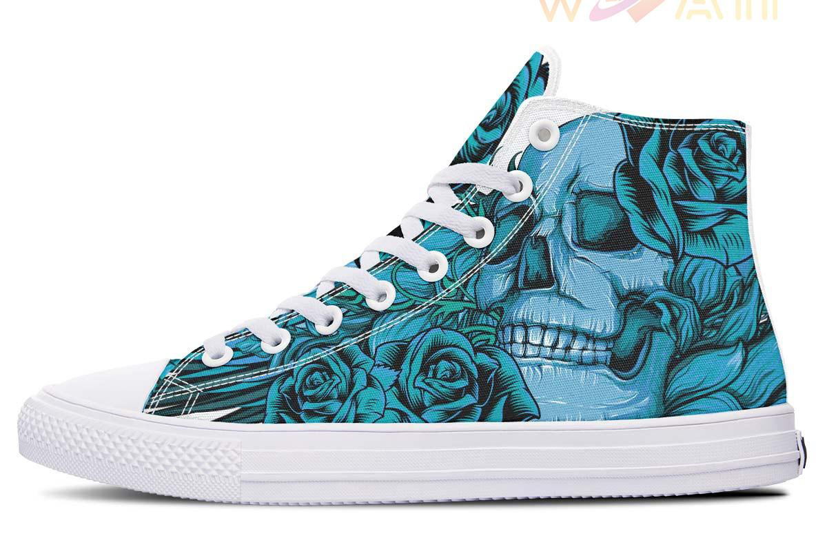 This Blue Skull Tattoo High Top Canvas Shoes was originally designed to be basketball shoes. These women’s and men’s casual shoes have become the go to walking shoes for just about any situation.