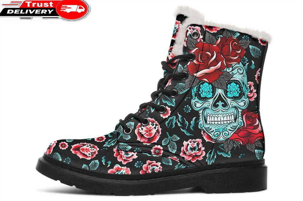 Blue Sugar Skull And Roses Faux Fur Leather Boots is a great pair of boots can really complete a look. Prep for unpredictable weather conditions or smart-casual plans with our edit of leather’s boots.