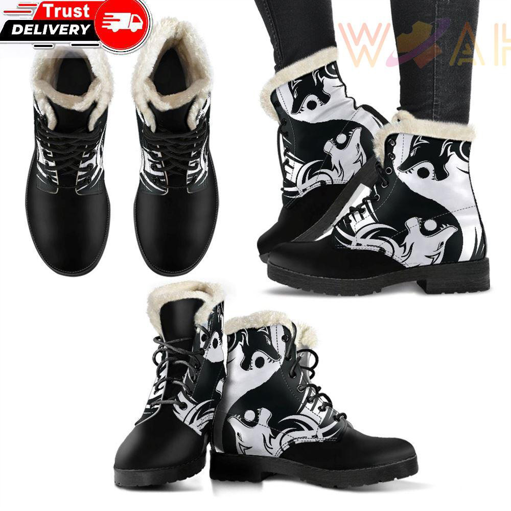 Bomber Faux Fur Leather Boots Ying Yang Wolf A21