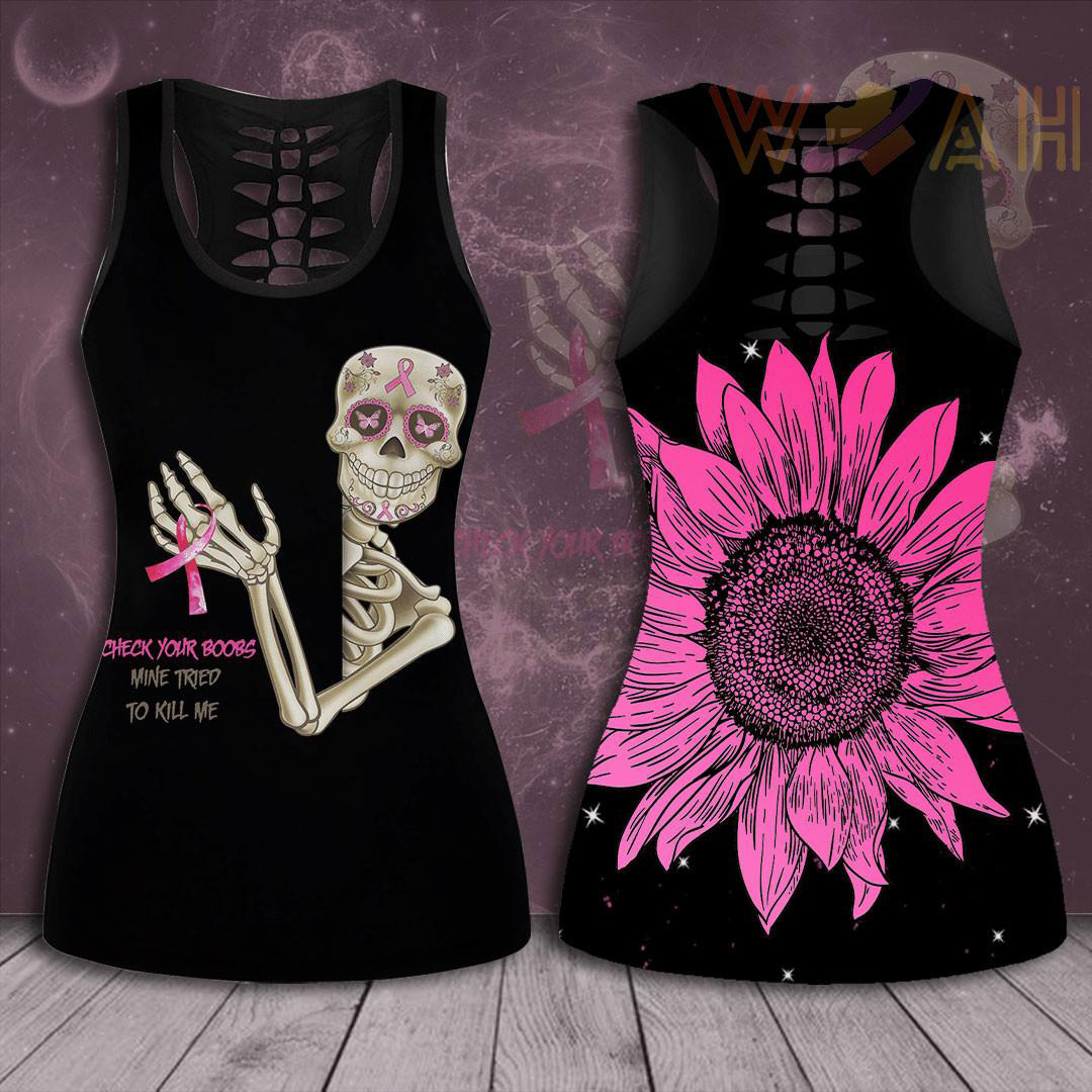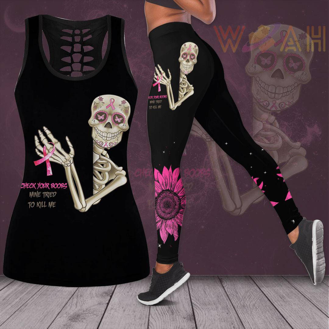 “Check Your Boobs” Breast Cancer Awareness 3D Hollow Tank Top & Leggings