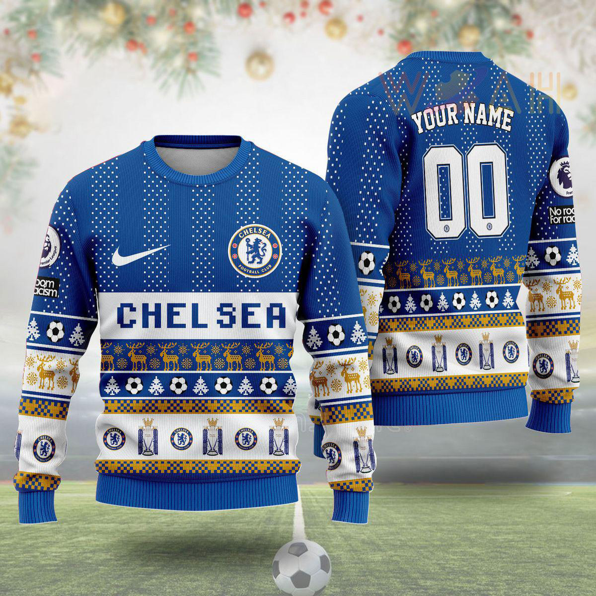 This Chelsea FC Christmas sweater will be a perfect gift for your loved ones and friends.