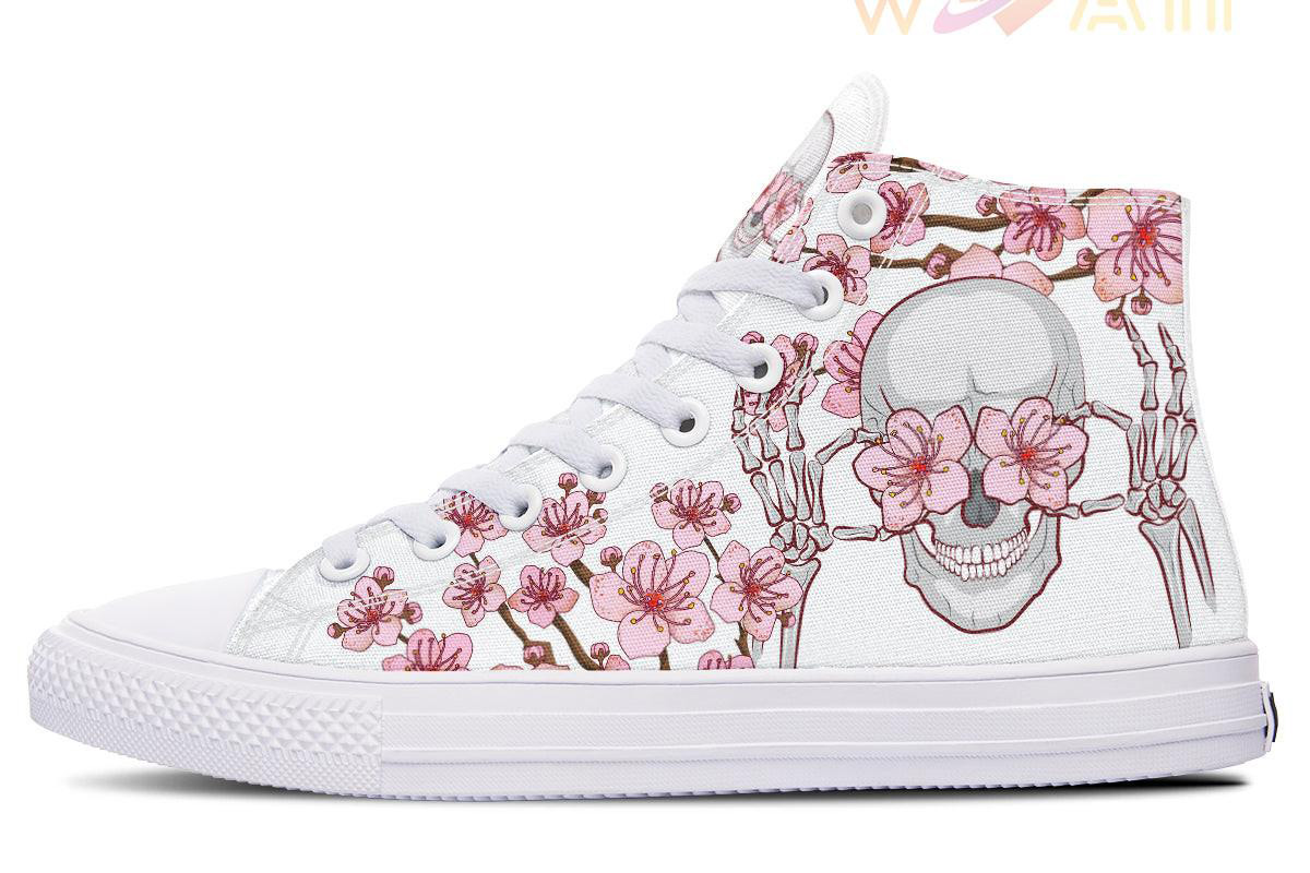 Cherry Blossom Eyes Skull High Top Canvas Shoes
