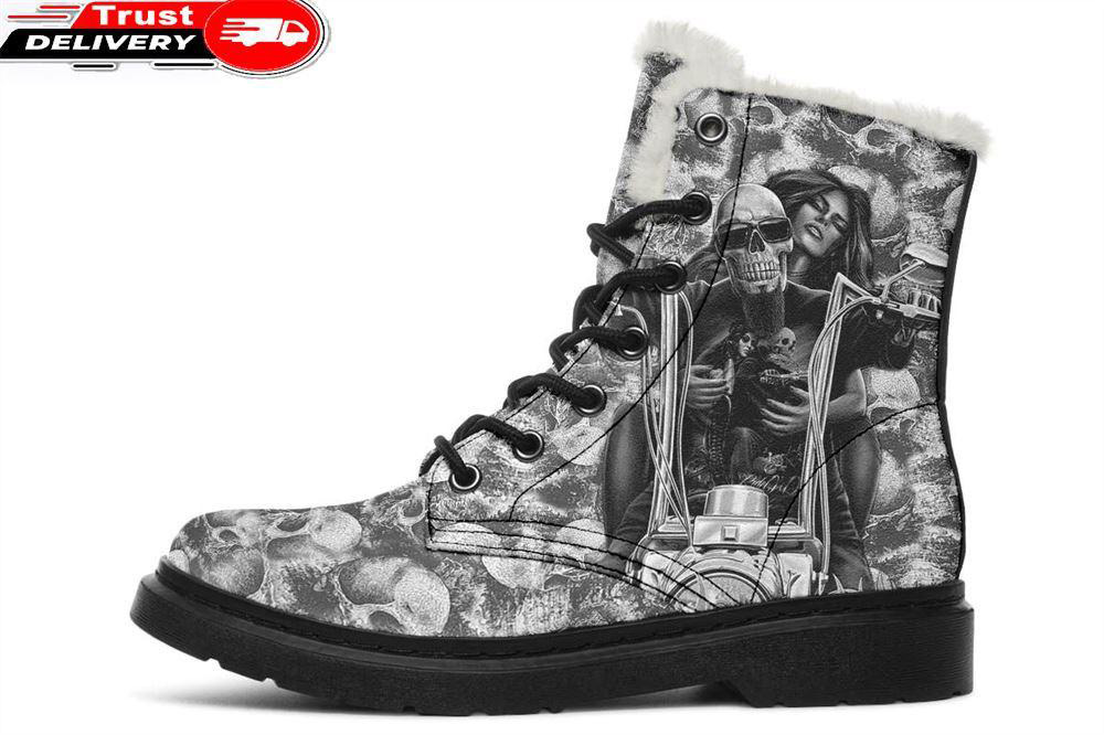 Chopper Skull Rider Faux Fur Leather Boots
