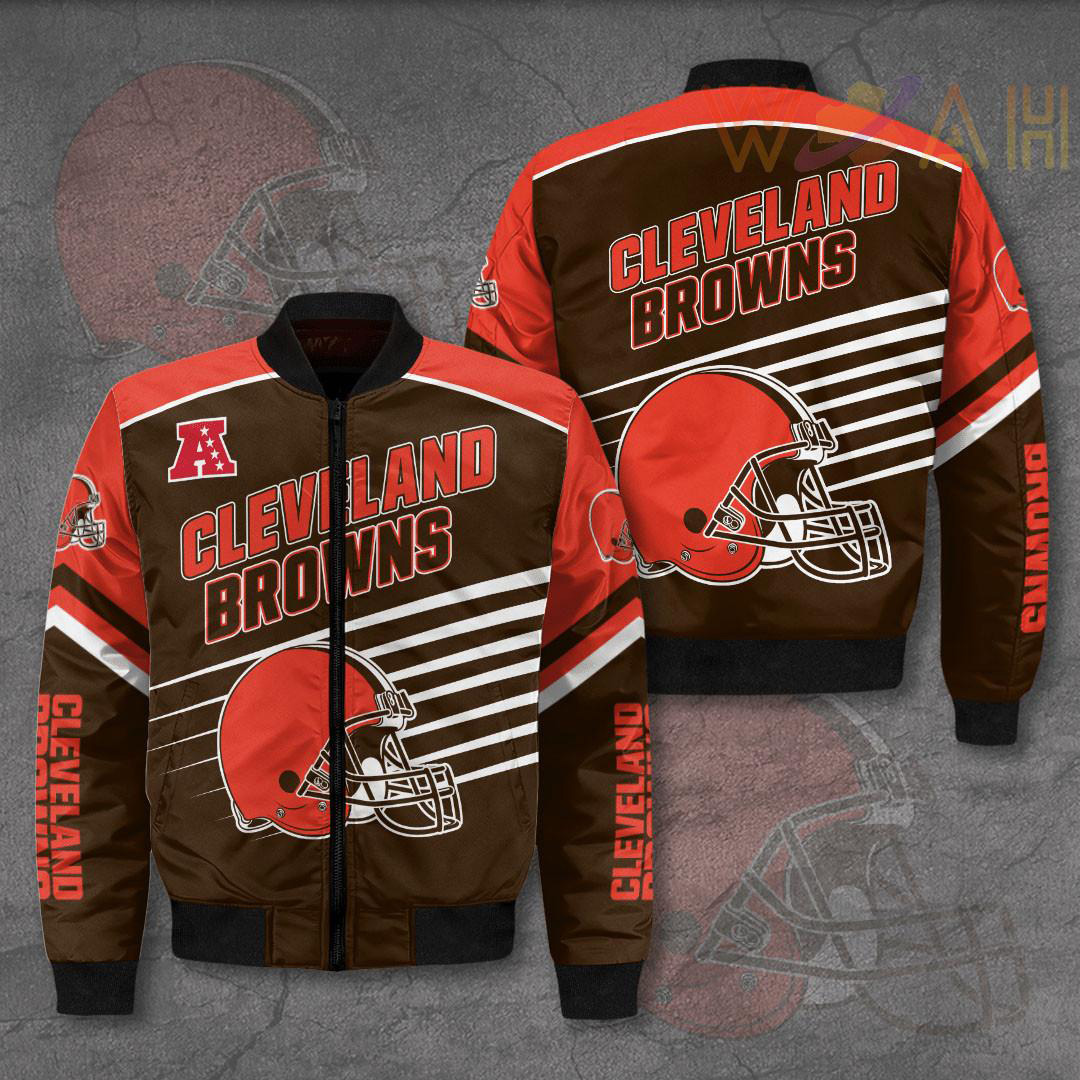 Size: S, M, L, XL, XXL, 3XL, 4XL, 5XL. Please check the Cleveland Browns bomber jacket sizechart and measuring instruction carefully before placing order as we CAN NOT offer return or refund if you choose a wrong size.