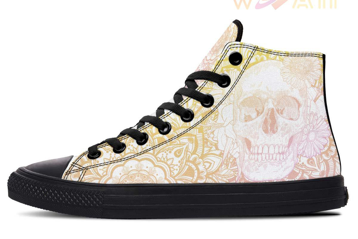 Color Skull And Daisy Flowers High Top Canvas Shoes