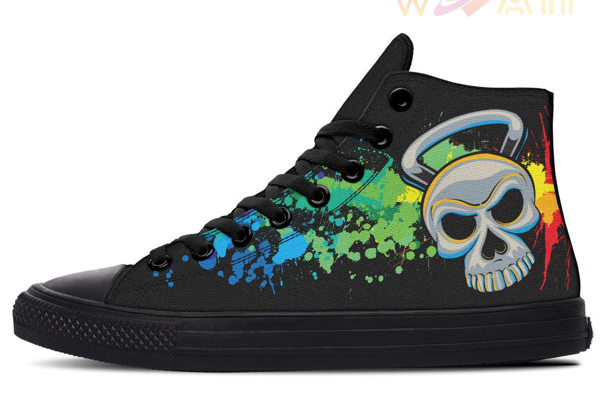 Color Splash Skull Kettlebell High Top Canvas Shoes