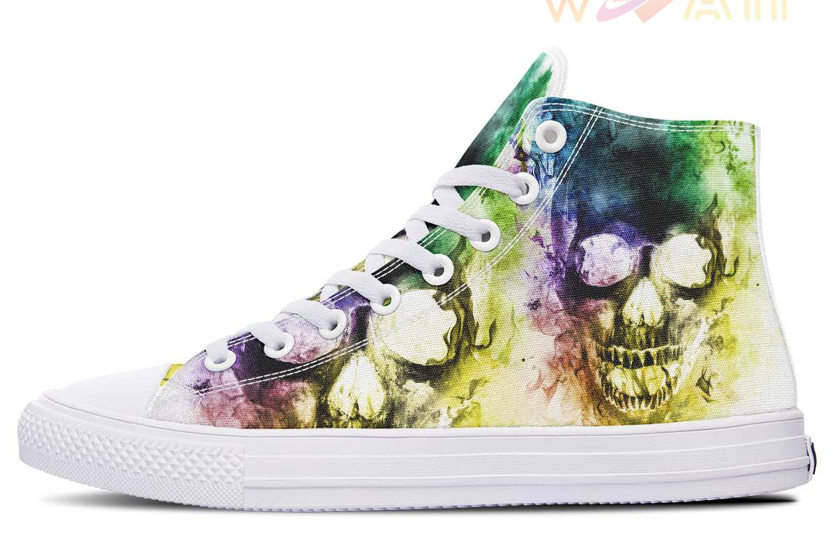 Colorful Flaming Skull High Top Canvas Shoes