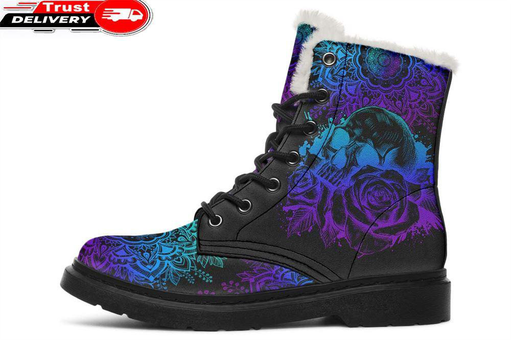 Colorful Mandala And Skull Faux Fur Leather Boots is a great pair of boots can really complete a look. Prep for unpredictable weather conditions or smart-casual plans with our edit of leather’s boots.
