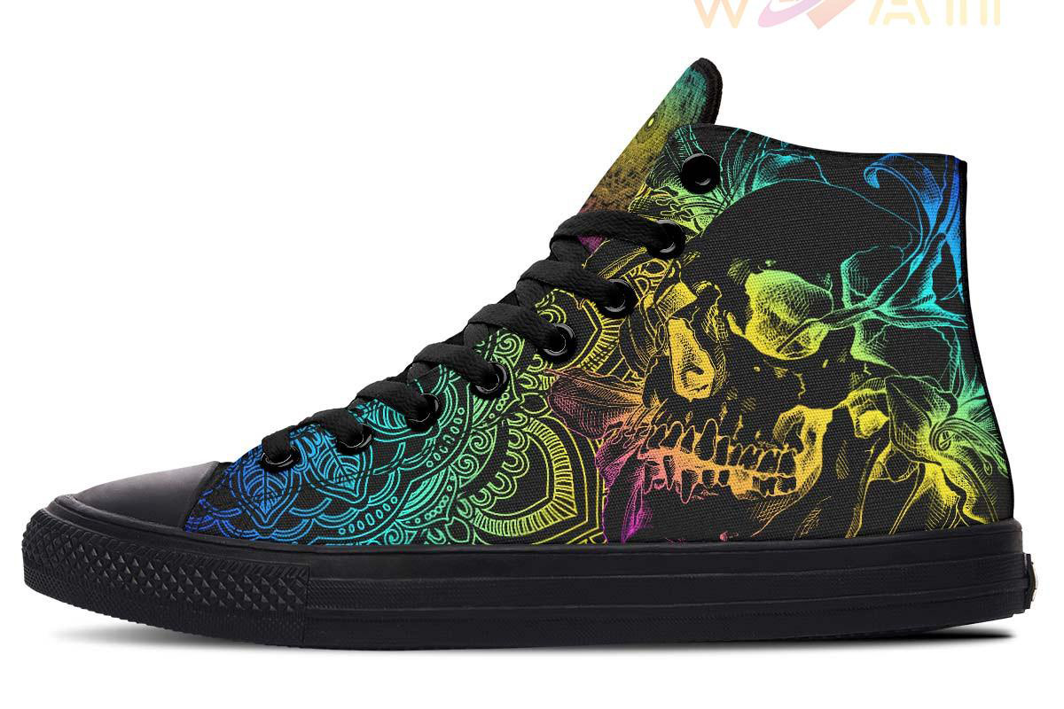 This Colorful Skull Mandala Flowers High Top Canvas Shoes was originally designed to be basketball shoes. These women’s and men’s casual shoes have become the go to walking shoes for just about any situation.