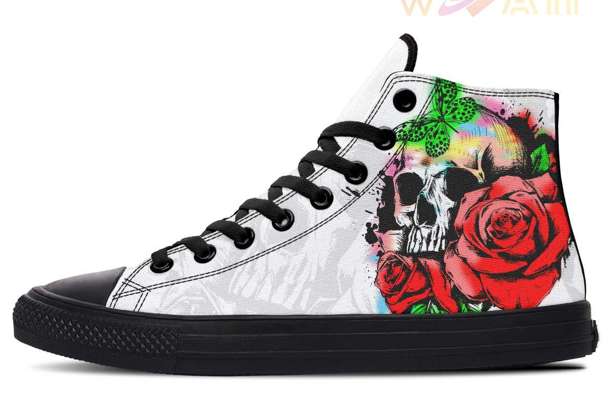 Colorful Skull Rose Butterfly High Top Canvas Shoes