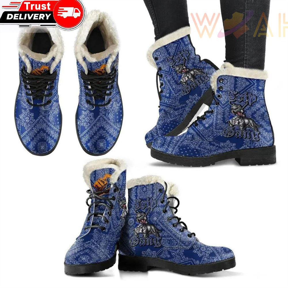 Crips Gang Bulldog Faux Fur Leather Boots Blue Paisley is a great pair of boots can really complete a look. Prep for unpredictable weather conditions or smart-casual plans with our edit of leather’s boots.