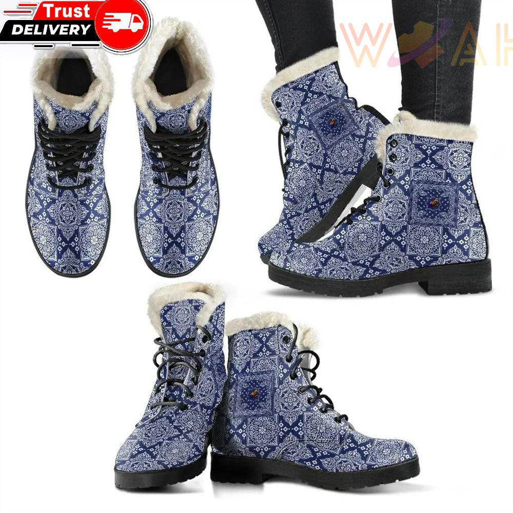 Crips Gang Faux Fur Leather Boots Blue Bandana Pattern is a great pair of boots can really complete a look. Prep for unpredictable weather conditions or smart-casual plans with our edit of leather’s boots.