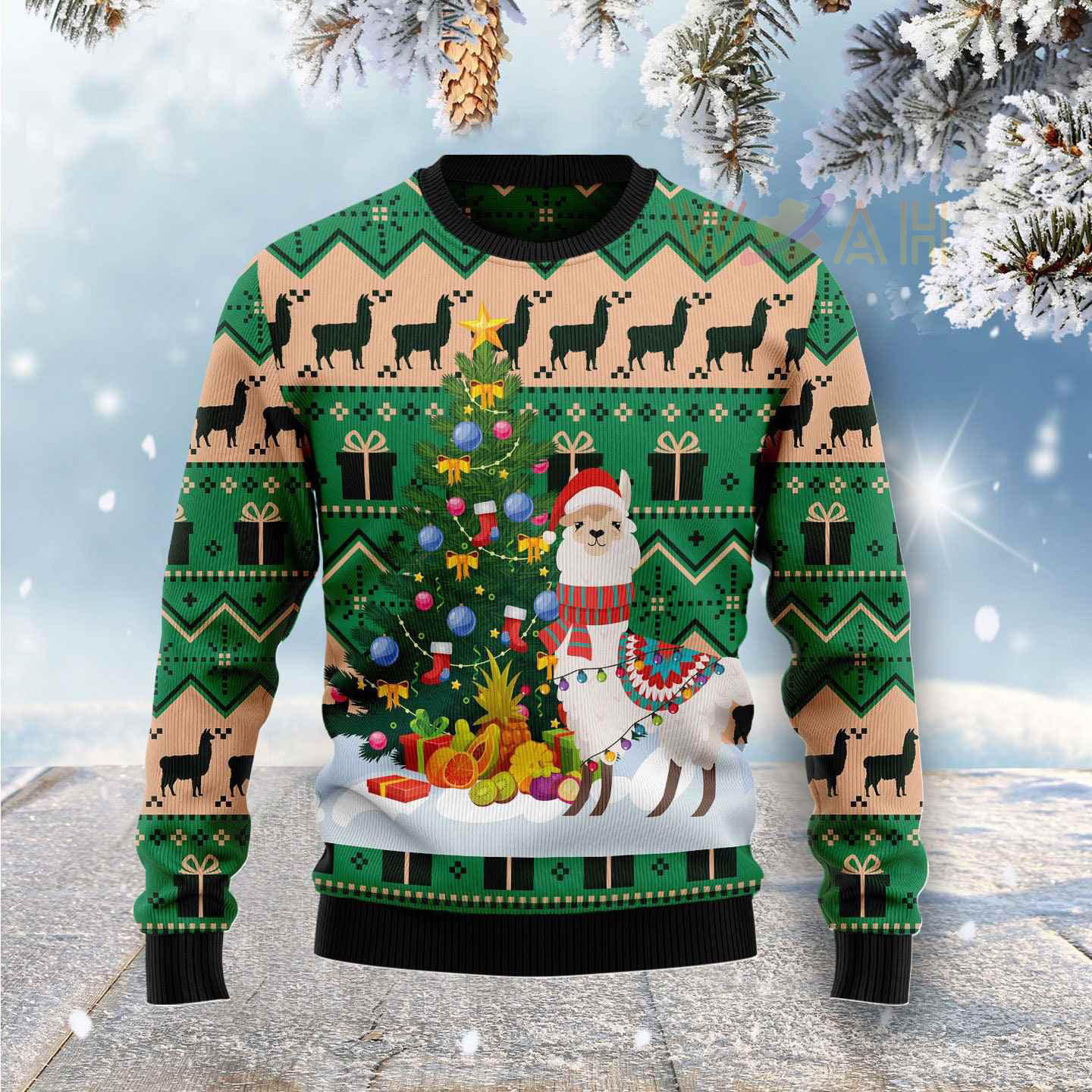 ABOUT THIS CUTE CHRISTMAS TREE LLAMA SWEATER…