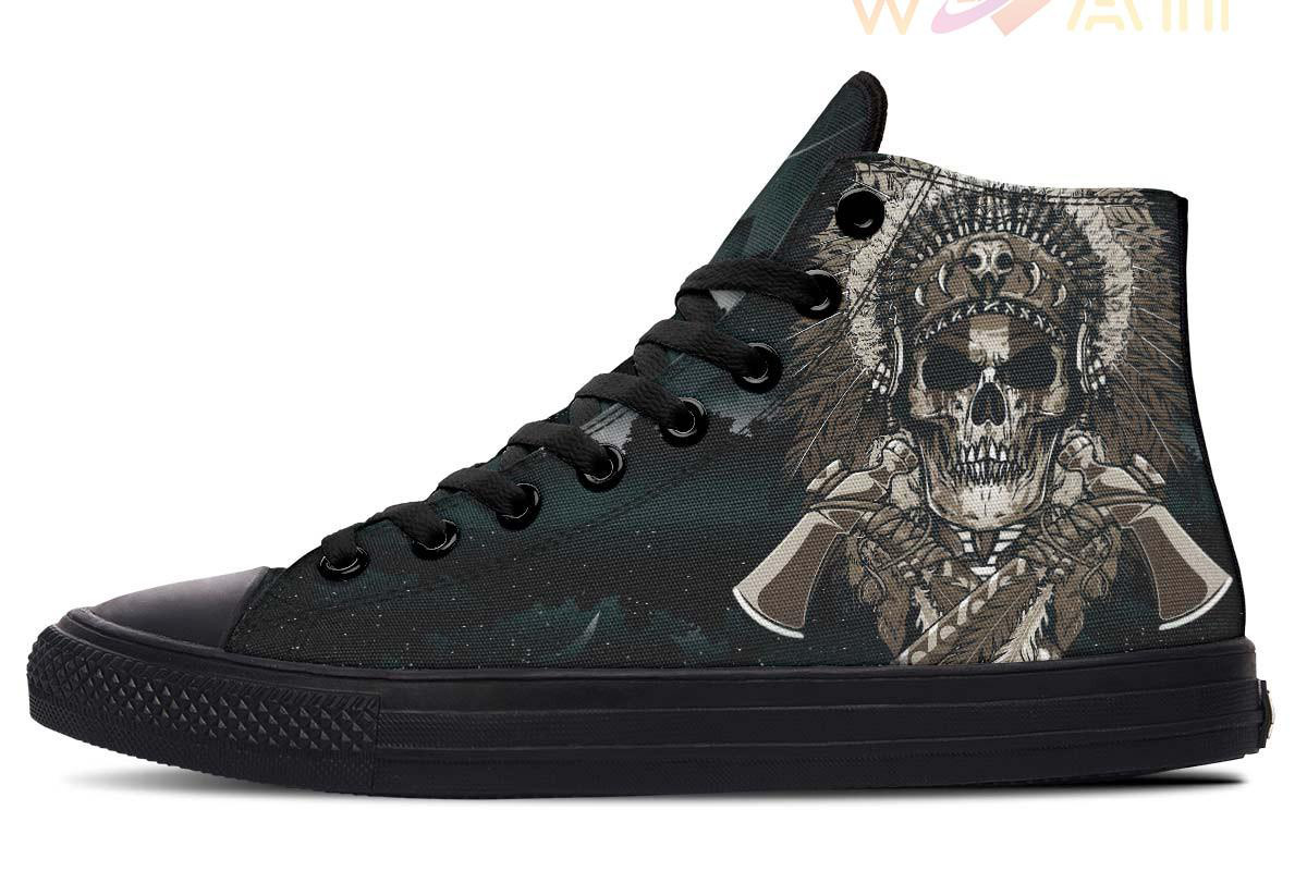 Dangerous Native American Chief With Axe High Top Canvas Shoes