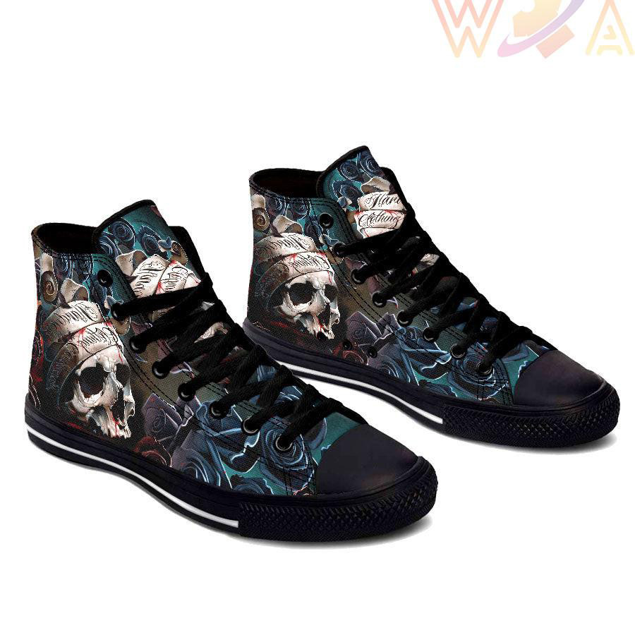 This Dark Blue Rose Skull High Top Shoes was originally designed to be basketball shoes. These women’s and men’s casual shoes have become the go to walking shoes for just about any situation.