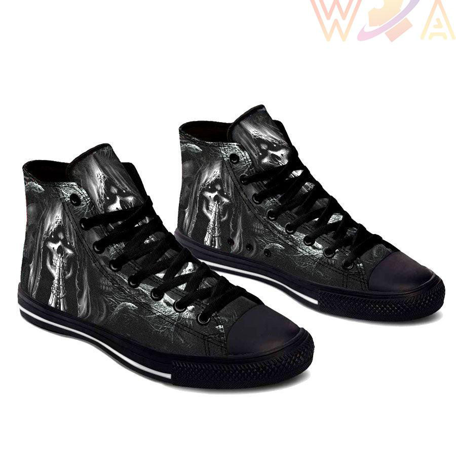 This Dont Speak Skull High Top Shoes was originally designed to be basketball shoes. These women’s and men’s casual shoes have become the go to walking shoes for just about any situation.