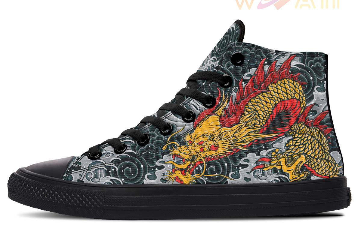 Dragon And Waves High Top Canvas Shoes