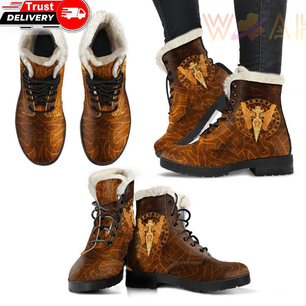 Faux Fur Leather Boots Gold Spear Of The God Odin Gungnir And Two Gold Ravens is a great pair of boots can really complete a look. Prep for unpredictable weather conditions or smart-casual plans with our edit of leather’s boots.