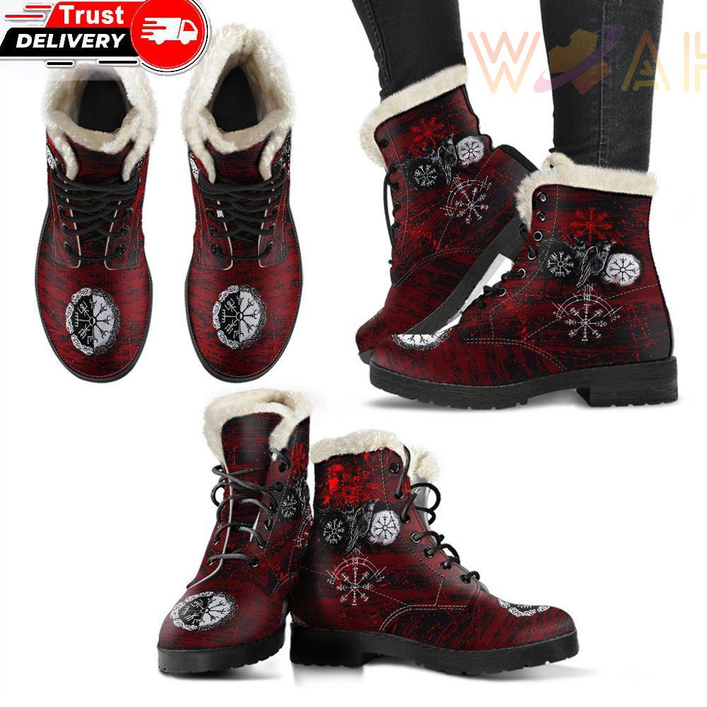 Faux Fur Leather Boots Raven Of Odin And Symbol Viking On Blood Background is a great pair of boots can really complete a look. Prep for unpredictable weather conditions or smart-casual plans with our edit of leather’s boots.