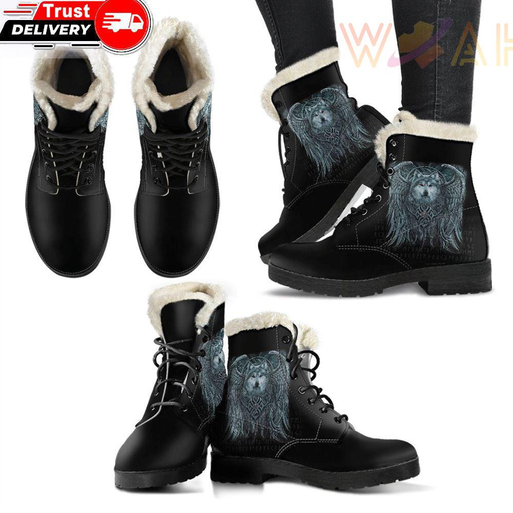 Faux Fur Leather Boots Spiral Wolf Spirit A31