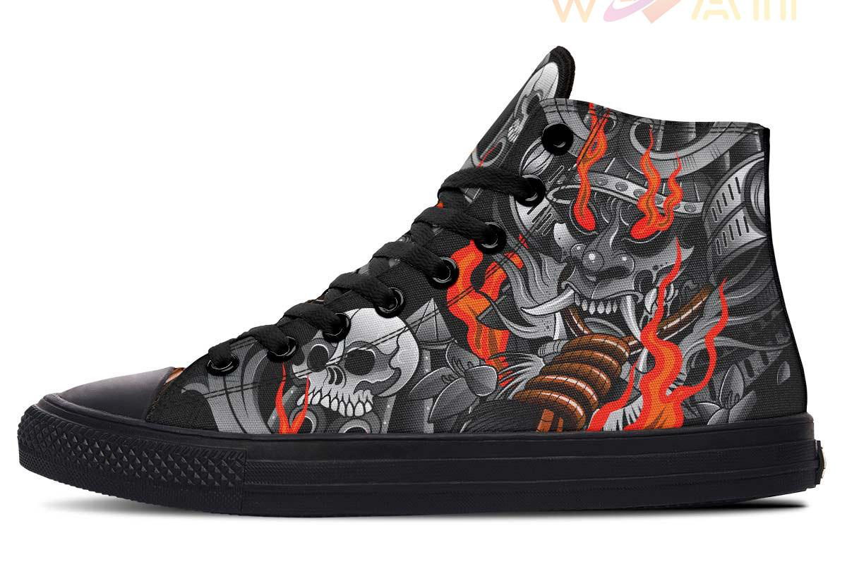 Fire Eyes Japanese Warrior High Top Canvas Shoes
