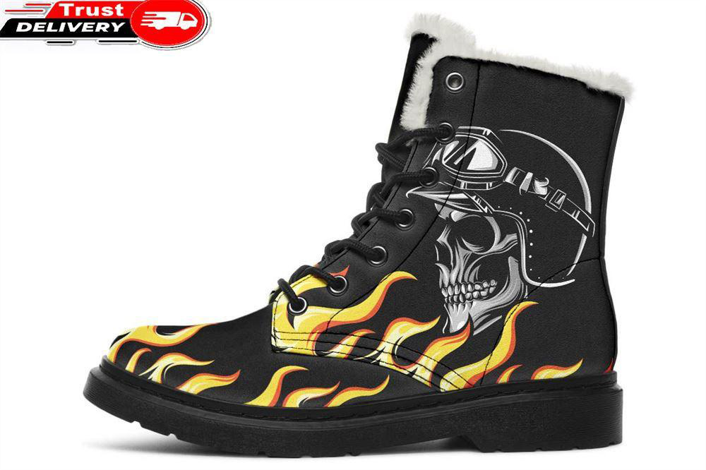 Fire Skull Faux Fur Leather Boots is a great pair of boots can really complete a look. Prep for unpredictable weather conditions or smart-casual plans with our edit of leather’s boots.
