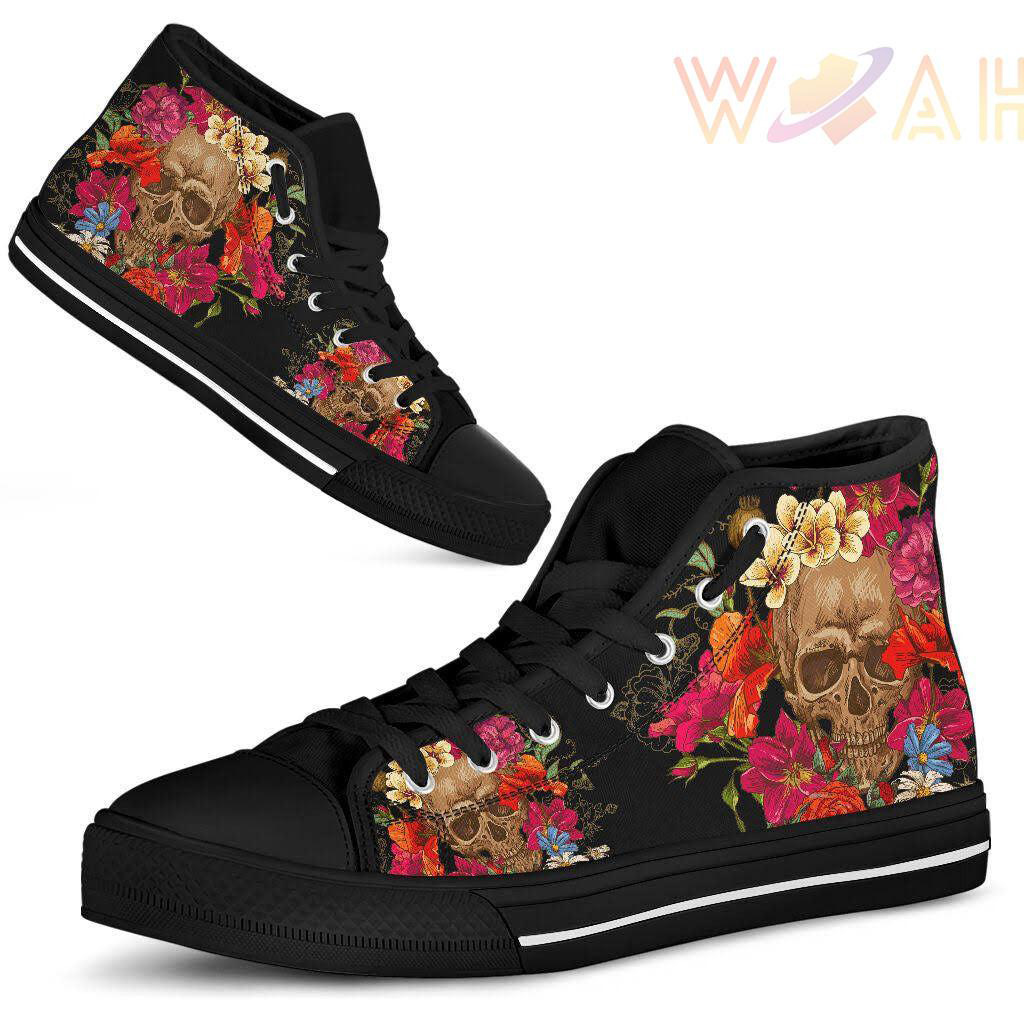 Flower Floral Sugar Skull Unisex High Top Canvas Shoes