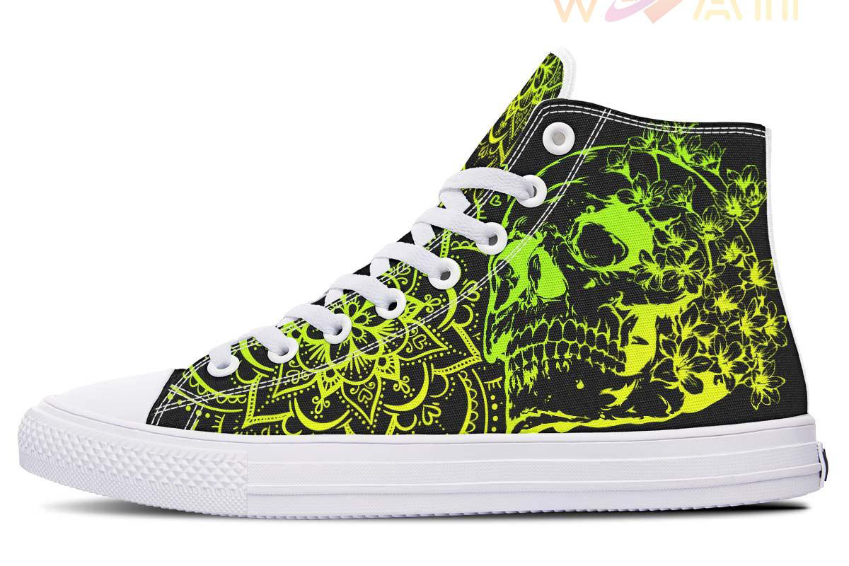 This Fluo Skull Flowers High Top Canvas Shoes was originally designed to be basketball shoes. These women’s and men’s casual shoes have become the go to walking shoes for just about any situation.