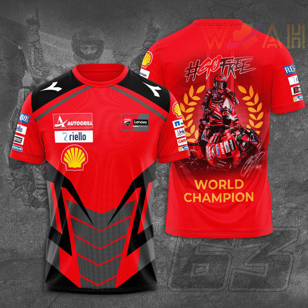 This Francesco Bagnaia “Go Free” x Ducati Lenovo 3D T-shirt, hoodie 2022 will make a perfect gift for Francesco Bagnaia fans.