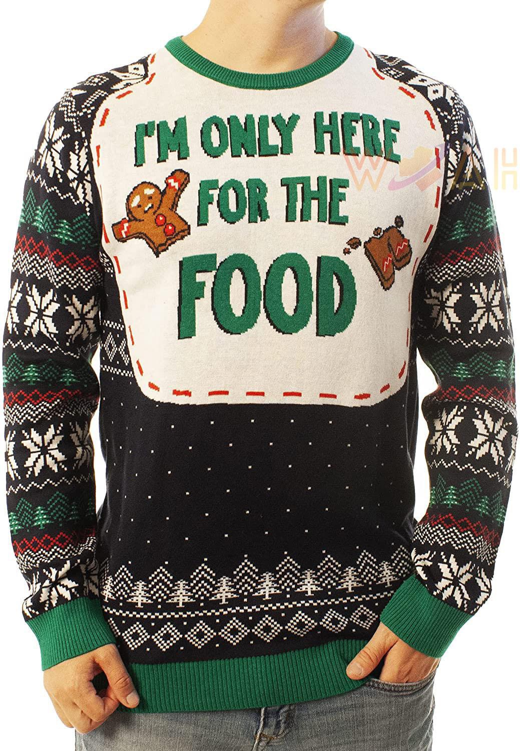 ABOUT THIS FUNNY SANTA HERE FOR THE FOOD NAVY SWEATER…