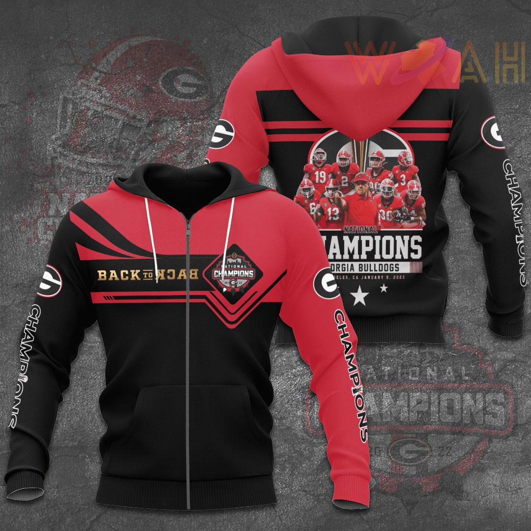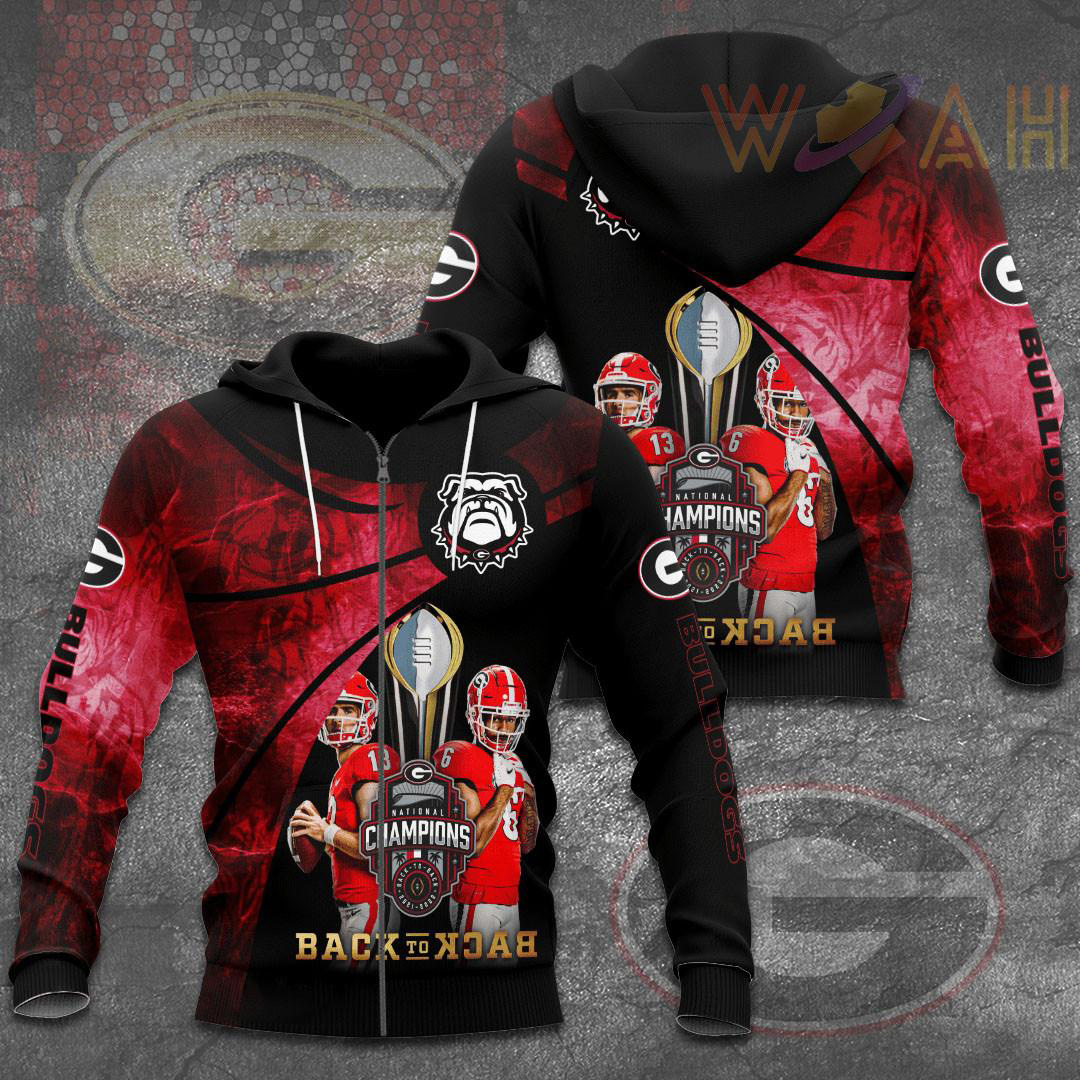 Size: S, M, L, XL, XXL, 3XL, 4XL, 5XL. Please check the Georgia Bulldogs zip-up hoodie sizechart and measuring instruction carefully before placing order as we CAN NOT offer return or refund if you choose a wrong size.