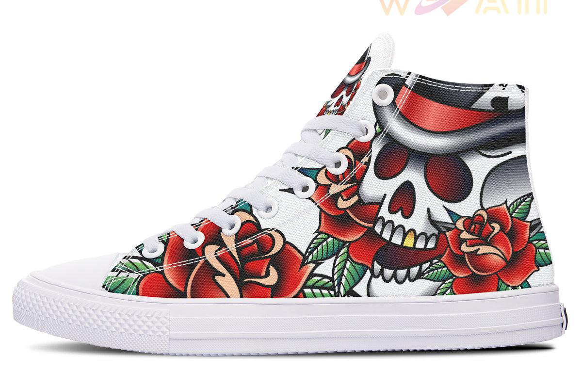 Gold Tooth Skull High Top Canvas Shoes