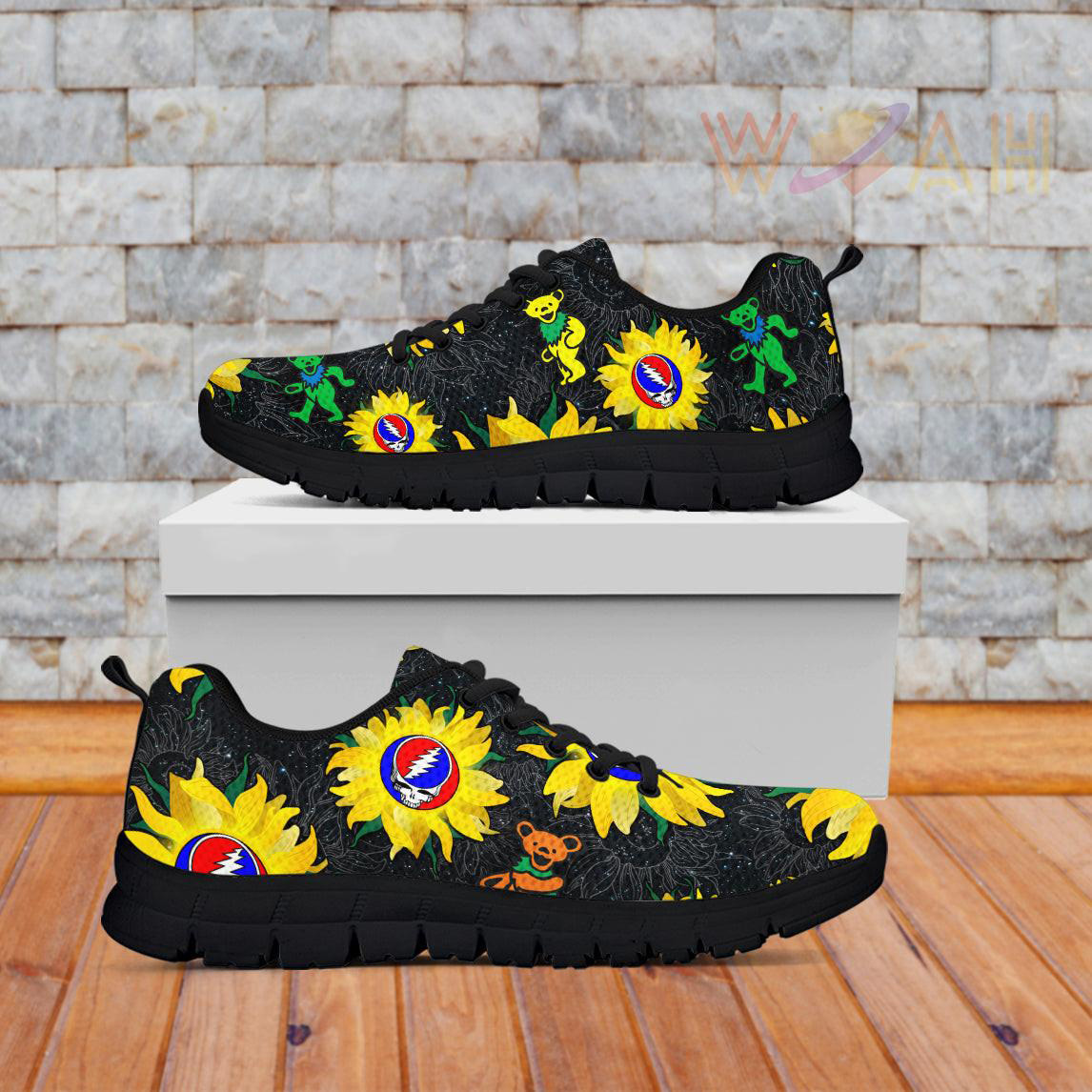 Grateful Dead Sneakers Bears Dancing In Sunflowers Garden designed with sleek lines for a minimalist look, these shoes have a light and breathable mesh upper. cushioning delivers comfort that lasts all day.