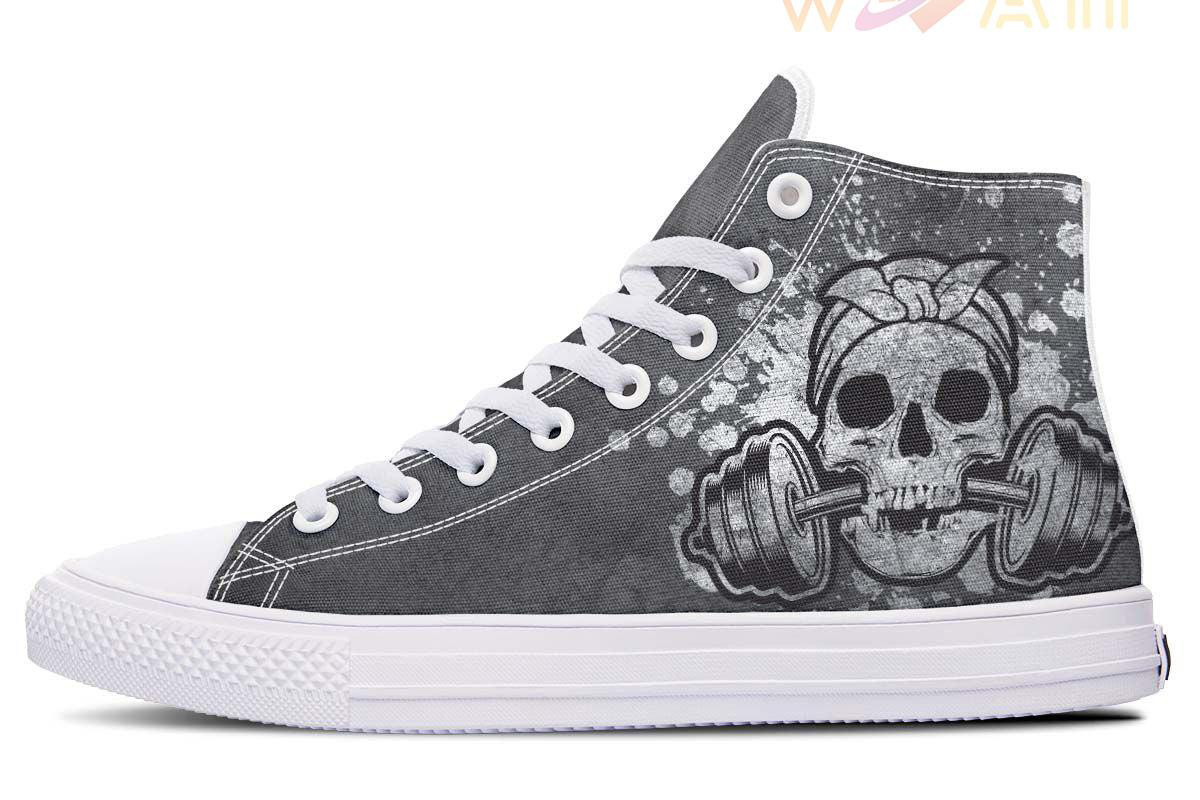 This Gray Splat Skull High Top Canvas Shoes was originally designed to be basketball shoes. These women’s and men’s casual shoes have become the go to walking shoes for just about any situation.