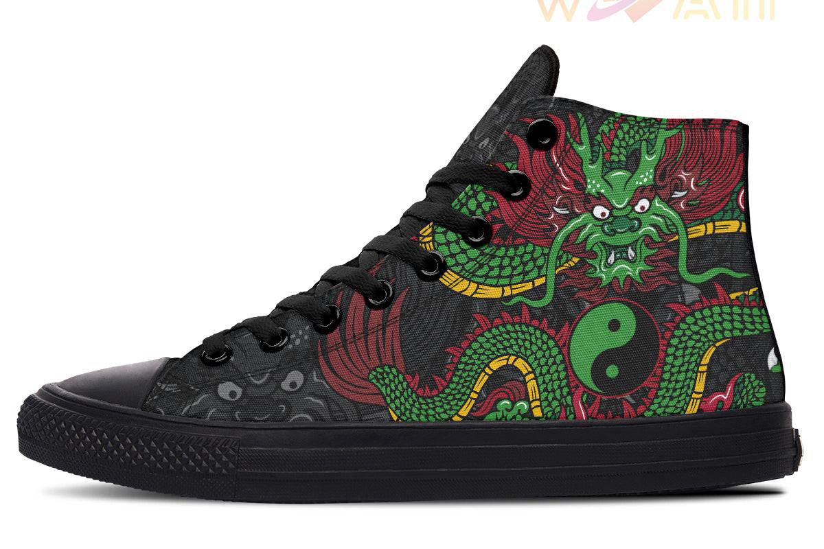 Green Dragon And Yin Yang High Top Canvas Shoes